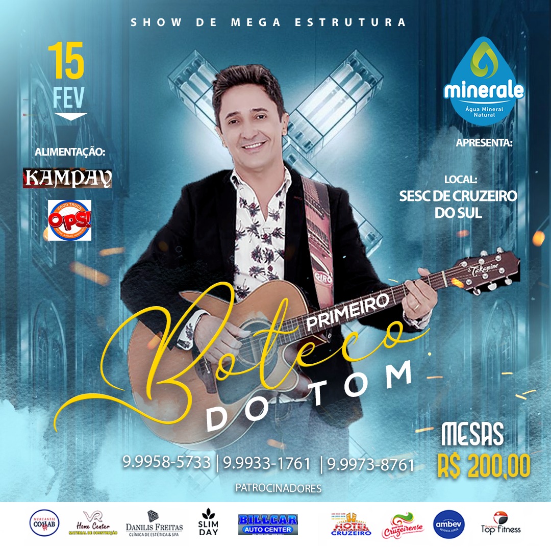 O cantor e compositor, Tom Cléber, retorna ao Juruá em grande estilo no dia 15 de fevereiro para realizar o primeiro “boteco do Tom” na cidade de Cruzeiro do Sul.
