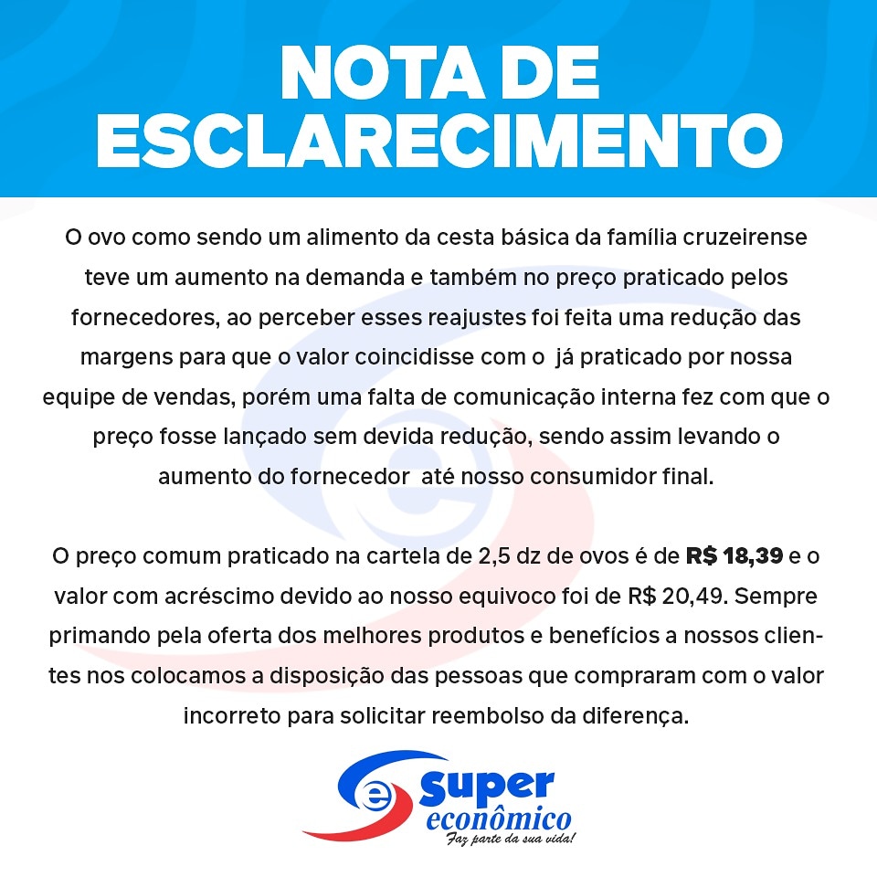 Após circular nas redes sociais, o Super Econômico, local onde a imagem foi registrada, acabou se pronunciado aos seus clientes em nota. Nela, a empresa diz ter cometido um “equivoco” ao anunciar este valor e que “esta a disposição dos clientes e pessoas que compraram com valor incorreto para solicitar reembolso da diferença”.