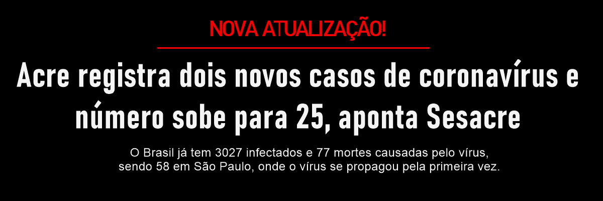 Assim, sobe de 23 para 25 o número oficial de pessoas infectadas por Covid-19 no Acre, desde o último dia 17 deste mês, quando foram divulgados os três primeiros casos da doença, com base nos exames a cargo do Laboratório de Infectologia Charles Mérieux, em Rio Branco.