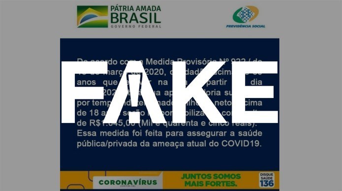 Nada disso é verdade. A medida provisória 922/20 foi editada em 28 de fevereiro, e não 18 de março, e dispõe sobre a contratação emergencial de trabalhadores temporários e servidores aposentados. A medida foi elaborada para reduzir a fila de espera de benefícios atrasados no INSS.