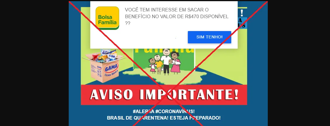 Circula no WhatsApp uma mensagem que promete saque de R$ 470 para beneficiários do Bolsa Família comprarem produtos de limpeza e máscaras para se prevenir contra o novo coronavírus. A corrente é falsa e o link que acompanha o texto leva para um site que pede o compartilhamento do boato. Não é recomendado fornecer informações pessoais e senhas de redes sociais em sites desconhecidos.