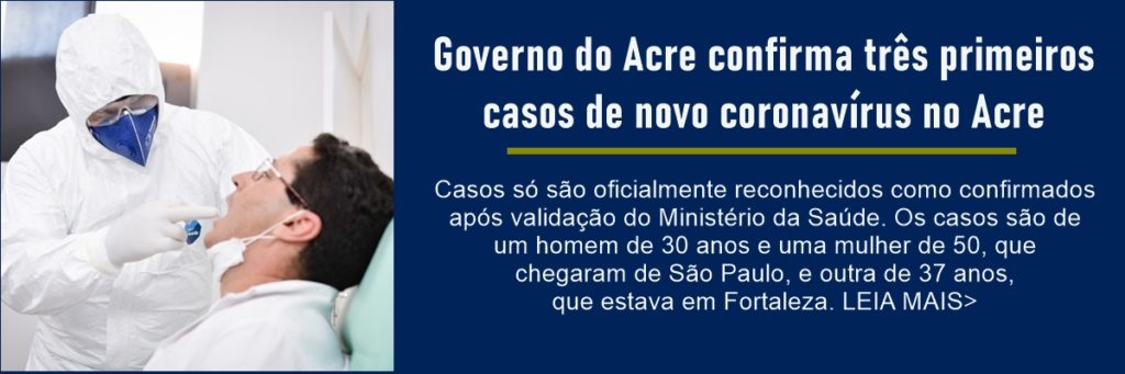 O gabinete do governador confirmou, nesta terça-feira (17), os três primeiros casos do novo coronavírus (Covid-19) no estado do Acre. A Secretaria de Saúde (Sesacre) ainda não se posicionou, mas deve fazê-lo ainda nesta terça em coletiva marcada para às 12h (14h no horário de Brasília).