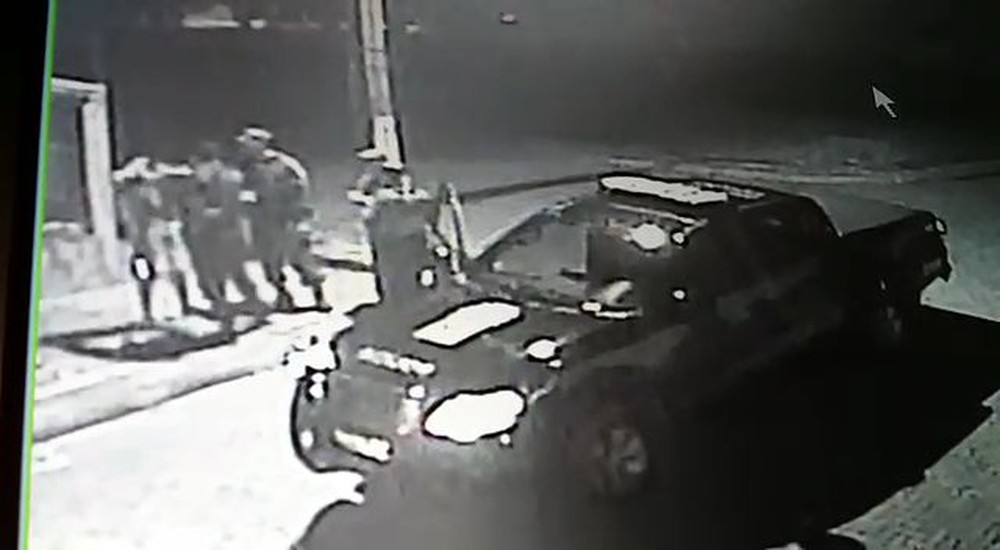Nas imagens, gravadas na noite desta quinta-feira (2) por volta das 23h40, a viatura policial se aproxima do rapaz e logo os quatro policiais descem do veículo.