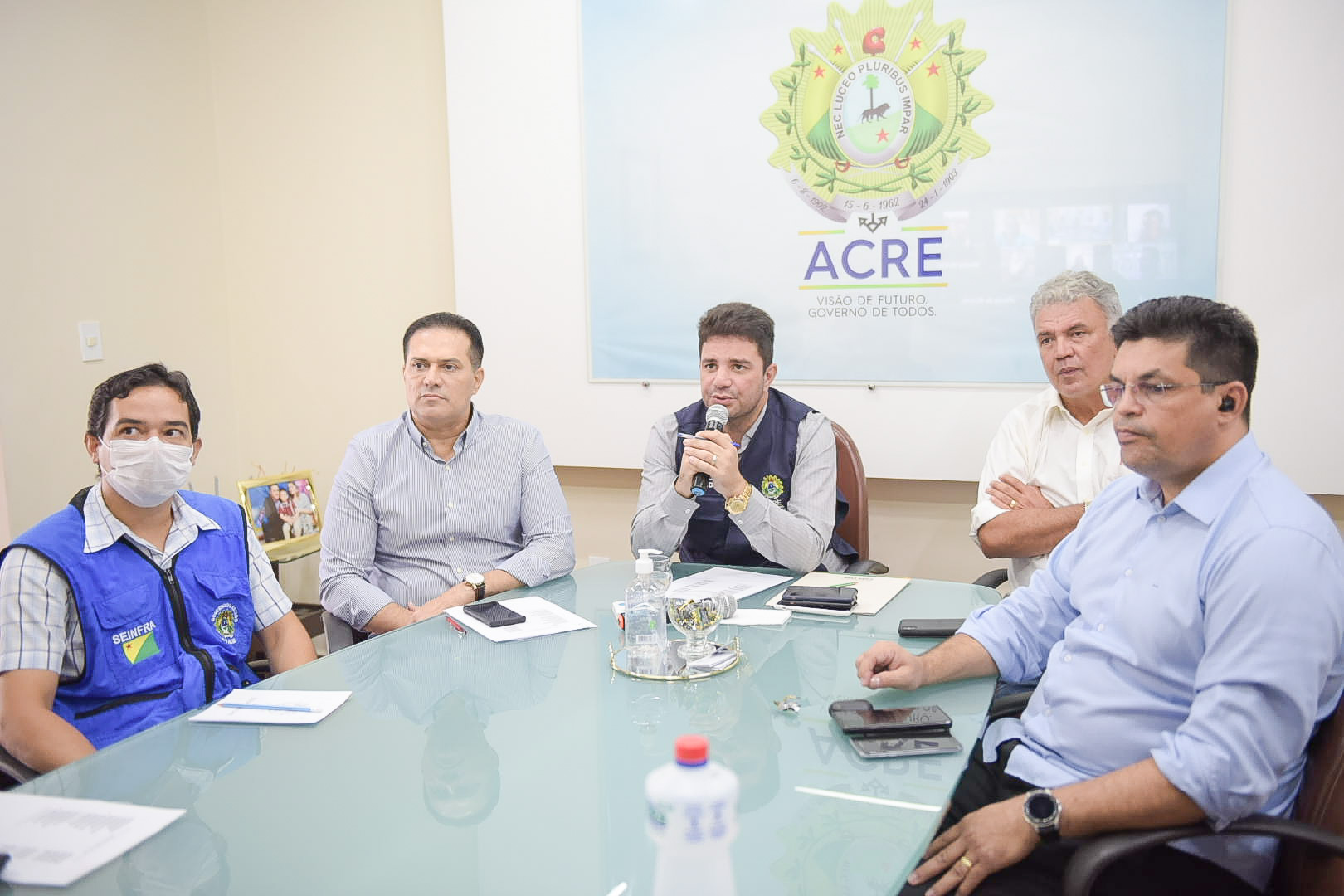 A reunião contou ainda com a presença do secretário da Casa Civil, Ribamar Trindade; do secretário de Saúde, Alysson Bestene; do secretário de Planejamento, Ricardo Brandão; e do secretário de Infraestrutura, Ítalo César.