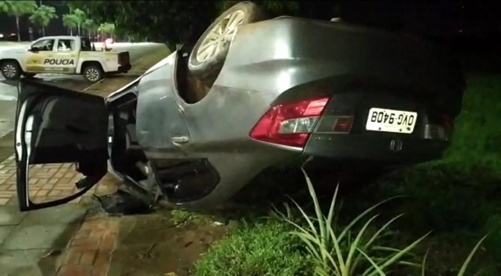 Um carro capotou na noite deste domingo (5), na Avenida Amadeo Barbosa, na região do Segundo Distrito de Rio Branco. Os passageiros do veículo fugiram do local após o acidente.