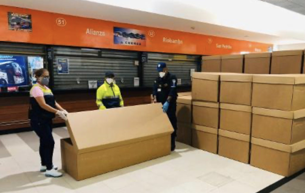 Guayaquil, centro econômico do Equador, é a cidade mais castigada pelo coronavírus no país. A localidade recebeu uma doação de mil caixões de papelão da Associação de Papeleiros equatoriana, que foi entregue a dois cemitérios da localidade. “É para que possam cobrir a demanda de caixões, que estão em falta na cidade ou são extremamente caros”, disse um porta-voz do conselho de Guayaquil.