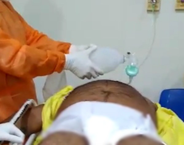 Com respirador quebrado, profissional da UPA faz respiração manual em paciente com Covid-19