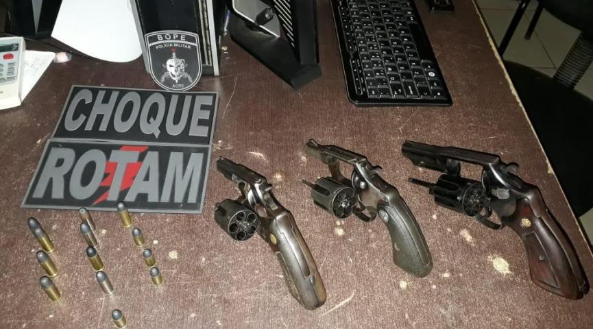 Depois de serem flagrados, os indivíduos foram perguntados sobre as armas e o táxi, e acabaram confessando que realmente estavam envolvidos no roubo do veículo e entregaram as armas de fogo que estavam no interior da residência, sendo 3 revólver de calibre 38 com 13 munições intactas, e disseram que o táxi estava na rua de trás.