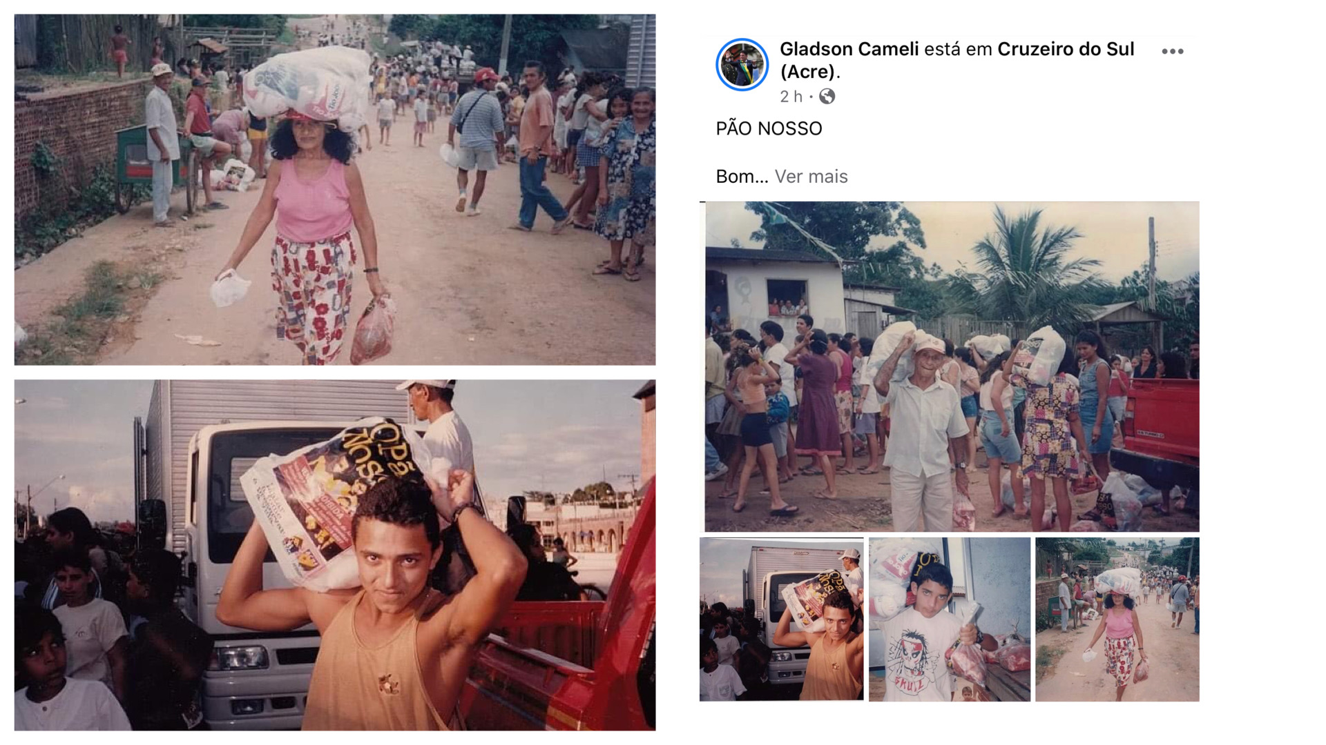 “Quis o destino que, décadas depois, iniciássemos aqui em Cruzeiro uma ação semelhante, desta vez socorrendo aqueles que infelizmente estão sofrendo mais com a queda da economia e o risco do Coronavírus”, escreveu Gladson Cameli.