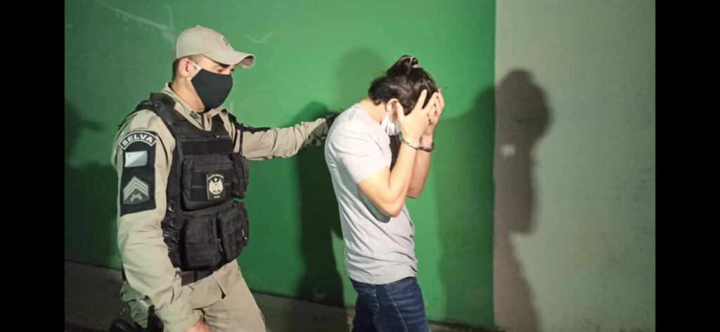 A Polícia Militar estava fazendo um patrulhamento de rotina na região quando receberam uma denúncia anônima de que em uma casa havia um homem com arma de fogo. A guarnição se deslocou até o local, fez o cerco, e ao adentrar na residência encontraram o líder da facção. Foi feito uma revista na casa e em posse do faccionário foi encontrado, 2 escopetas, 1 espingarda, 6 granadas de fabricação caseira, 2 rádio comunicadores, balança de precisão, 3 carregadores de pistola, munições, 2 coletes balístico, 2 drones e R$ 400,00 em notas falsificada.