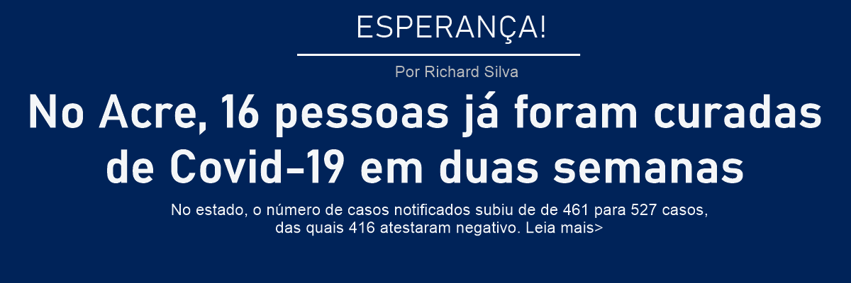 Das 43 pessoas infectadas pelo coronavírus no Acre, 16 delas foram curadas, é o que informou o boletim diário da Secretaria Estadual de Saúde, divulgado na última quarta-feira, 1.