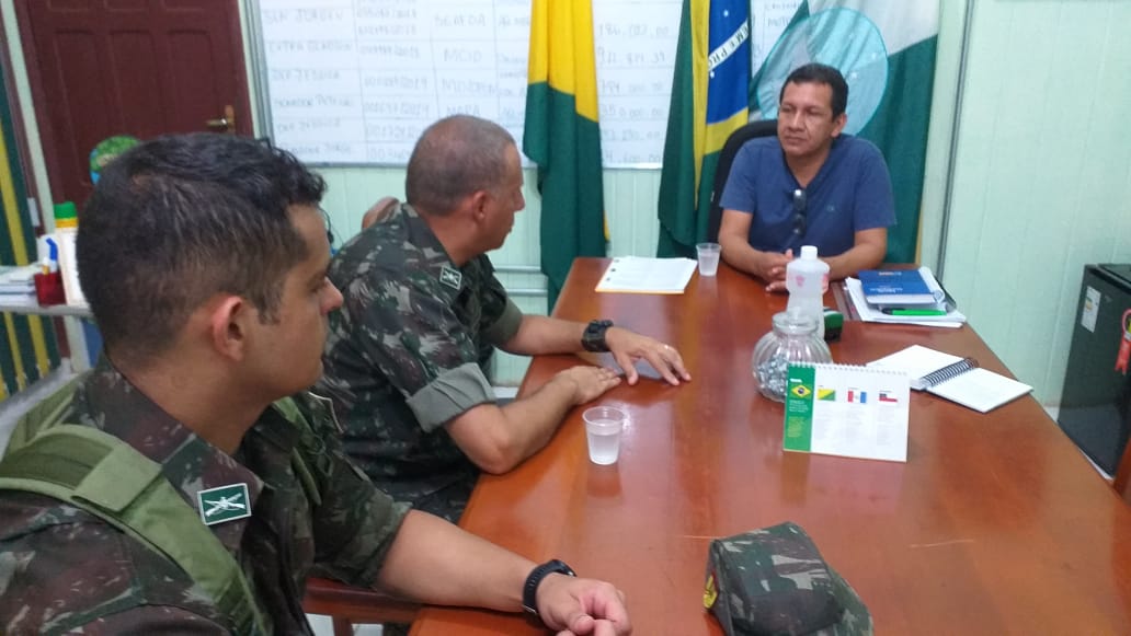 Na manhã desta quarta-feira, 1, Isaac Piyãko se reuniu com o comandante do 61° BIS, tenente-coronel Carlos Eduardo, para alinhar medidas de enfrentamento às pessoas que insistem em descumprir o decreto de paralisação das embarcações.