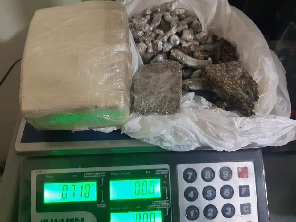 A polícia prendeu os dois e encaminhou para a delegacia de polícia. Ao todo, foram apreendidos 710 gramas de maconha.