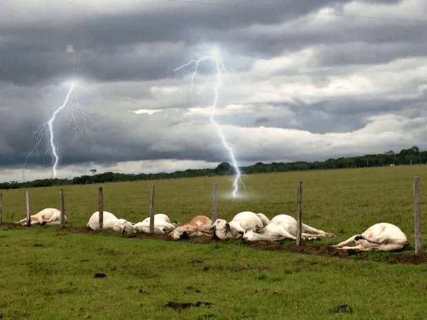 Pelo menos 14 cabeças de gado morreram com uma descarga elétrica que atingiu uma propriedade localizada no ramal do Pinduca, na estrada Linha Seca, zona rural de Sena Madureira, na tarde desta sexta-feira (24).