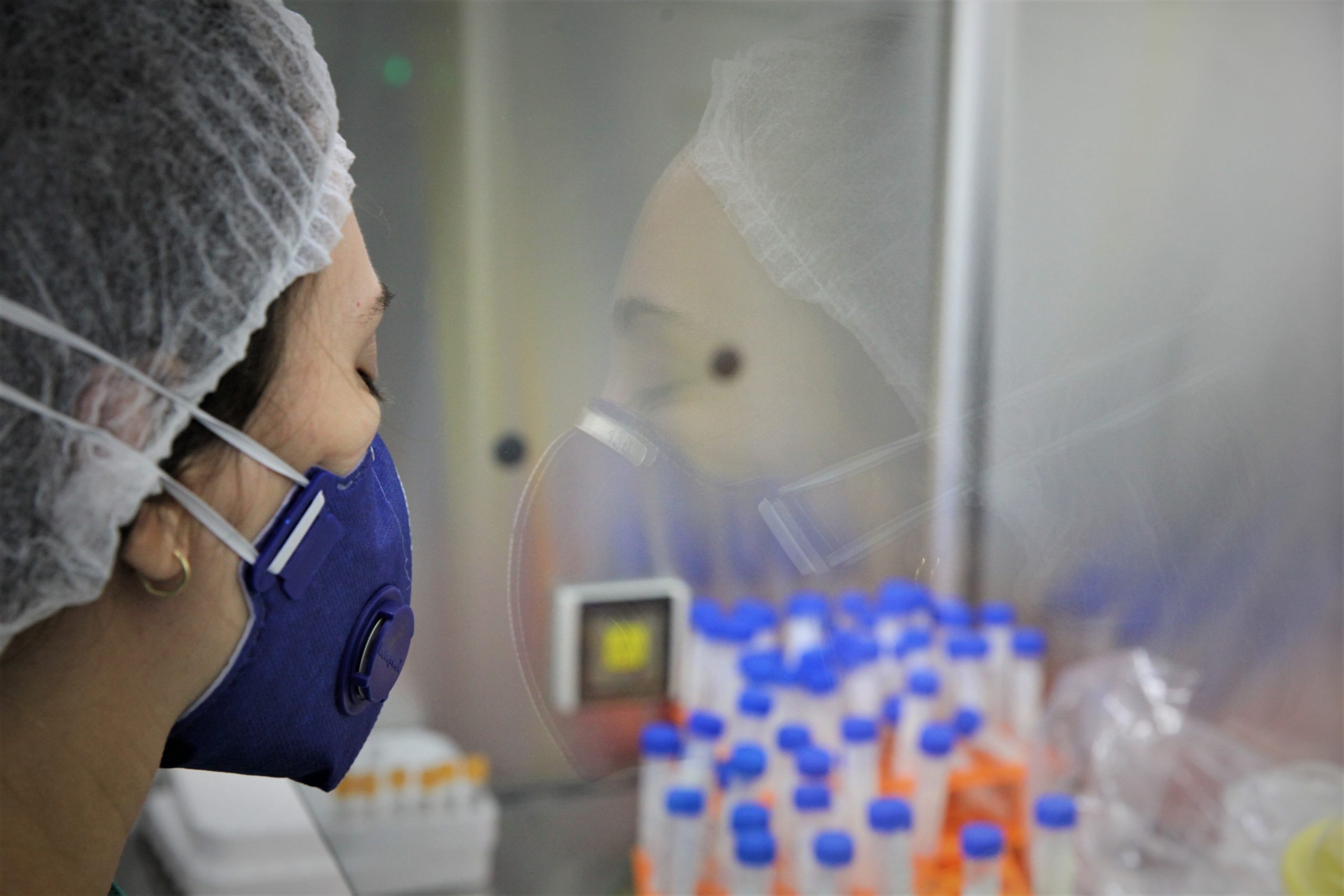 Uma a uma, as caixas térmicas são colocadas em local demarcado com fitas de segurança em amarelo e preto, próximas de uma coluna de alvenaria. Dali, são retiradas pela biomédica Zenaide Ferreira, que desaparece pelas portas de entrada do Laboratório Rodolphe Mérieux, uma das oito instituições que compõem a Rede Internacional de Laboratórios de Pesquisa e Diagnósticos da Fundação Mérieux, com sede em Lyon, na França.