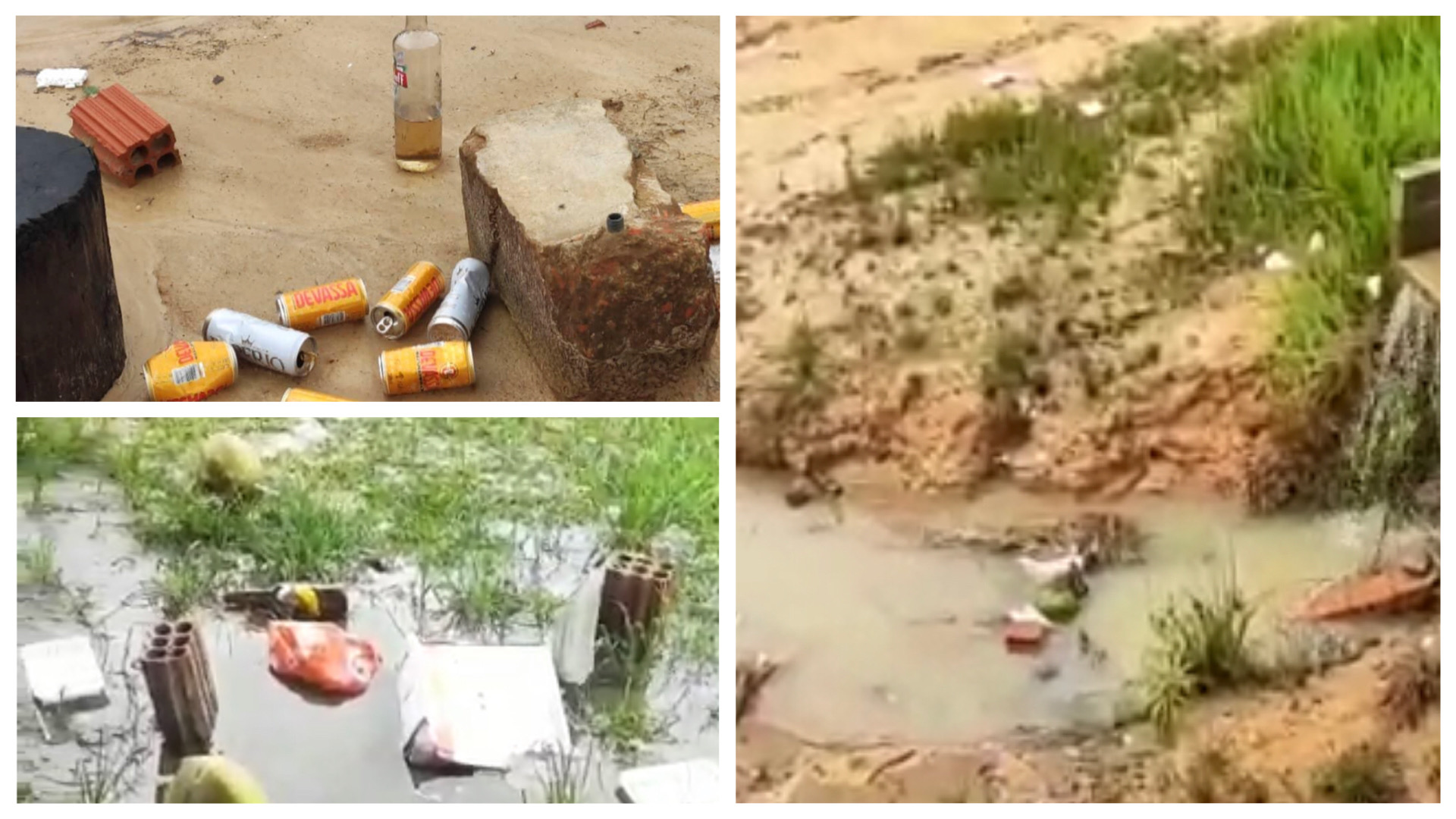 As imagens foram gravadas na manhã deste sábado, 11, e mostram muitas latas, garrafas e resto de comida no chão do balneário.