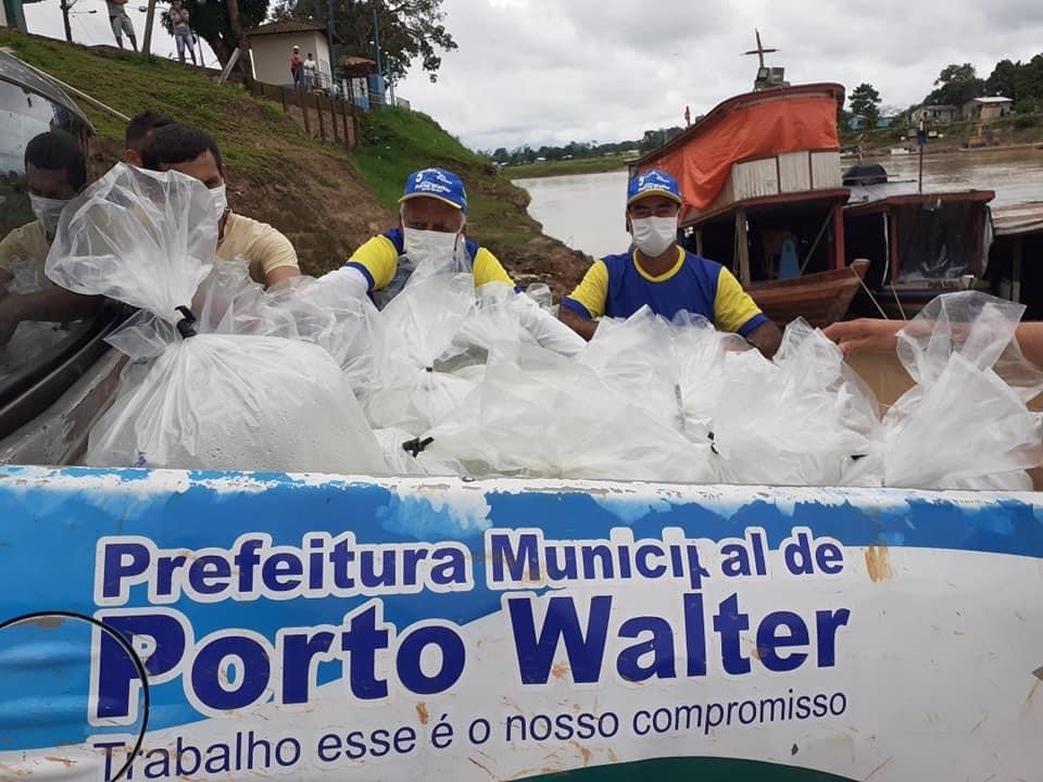 Mais de 200 famílias de Porto Walter receberam, no sábado, 11, alevinos como incentivo à produção. A iniciativa foi do prefeito Zezinho Barbary.