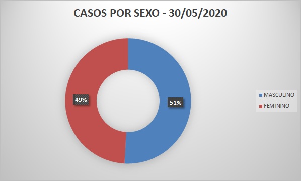 Das 938 pessoas que já receberam o diagnóstico positivo do novo coronavírus em Cruzeiro do Sul, 51% são homens e 49% são mulheres, de acordo com dados repassados pela Secretaria Municipal de Saúde.
