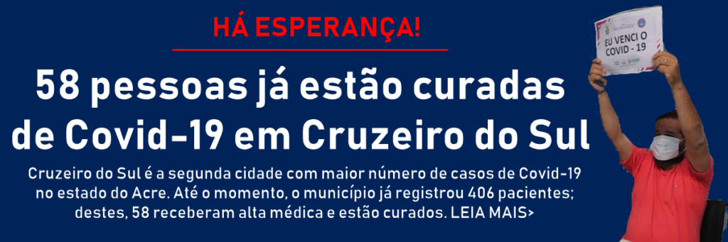 Cruzeiro do Sul é a segunda cidade com maior número de casos de Covid-19 no estado do Acre. Até o momento, o município já registrou 406 pacientes; destes, 58 receberam alta médica e estão curados.