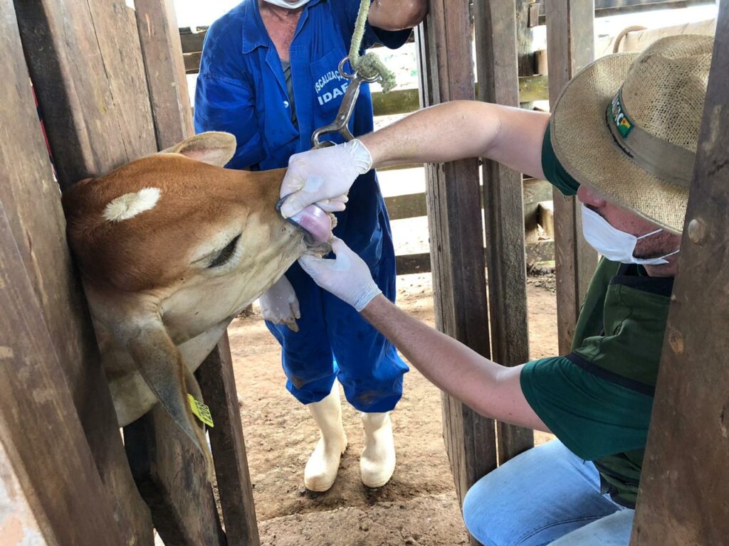 O Instituto de Defesa Agropecuária e Florestal do Acre (Idaf) está realizando a sorologia de febre aftosa em 17 propriedades rurais do estado distribuídas nos municípios de Rio Branco, Feijó, Tarauacá e Cruzeiro do Sul. Serão colhidas amostras de sangue de, aproximadamente, 500 bovinos e realizadas inspeções clínicas e conferências de rebanho, visando a nova condição sanitária.