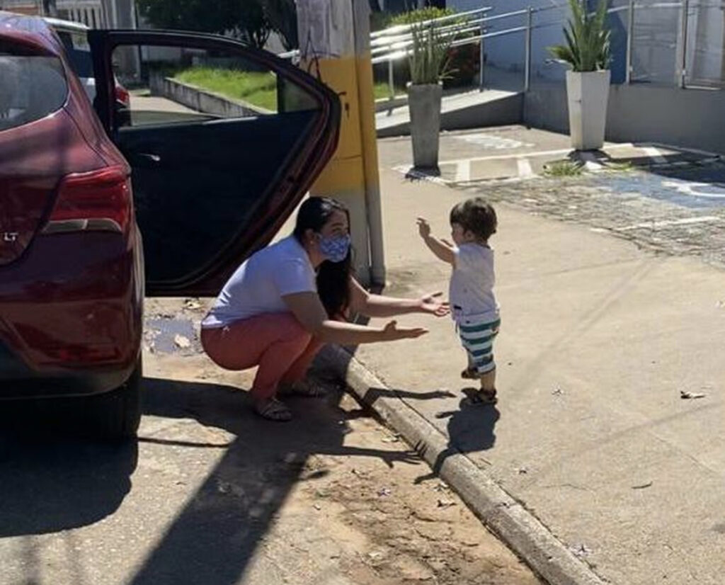 “Eu ia na frente da minha casa, falava com eles no portão e eu ficava no carro, longe. Todo dia passava para ver como meu filho estava e meu esposo ficou tomando conta do meu meu filho, minha mãe e avó”, diz.