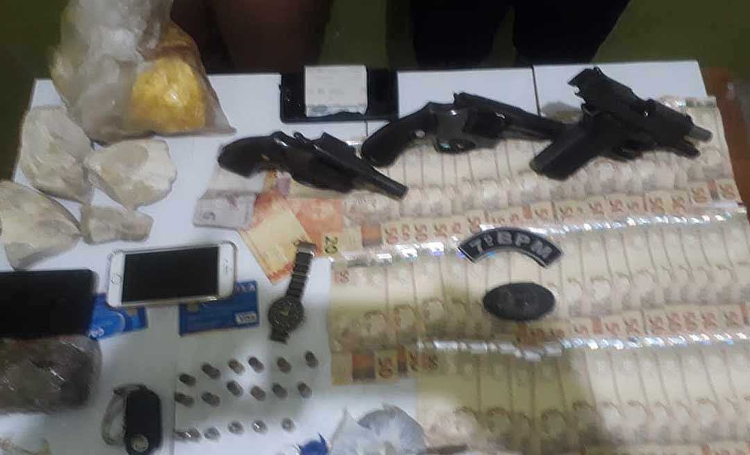 Durante o patrulhamento da Polícia Militar, a equipe suspeitou de um carro, com duas pessoas, que havia saído do município de Rodrigues Alves com destino a Tarauacá. Durante a abordagem houve a vistoria do veículo, momento em que os policiais localizaram uma pistola Taurus 40, de uso restrito da Secretaria de Segurança Pública; dois revólveres, calibre 38, e munições para as duas armas. Além disso, os policiais encontraram no veículo o valor de R$ 2.175 em dinheiro, 1kg de maconha e 90g de cocaína.