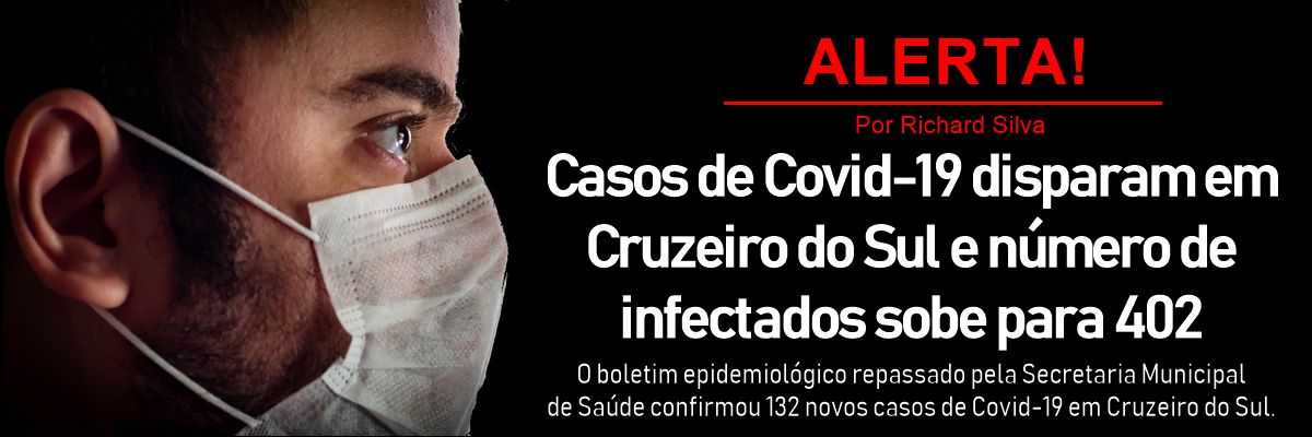 Na noite desta terça-feira, 19, o boletim epidemiológico repassado pela Secretaria Municipal de Saúde, confirmou 132 novos casos de Covid-19 em Cruzeiro do Sul. O número subiu de 270, para 402 infectados.
