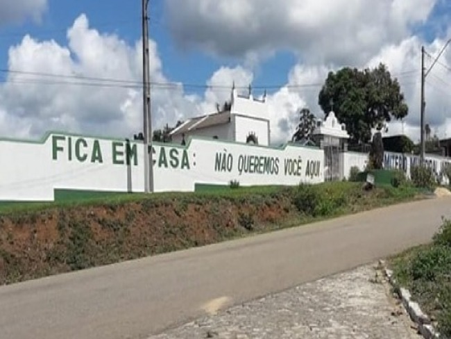 O muro do cemitério foi pintado na segunda-feira (30). “Fica em casa: não queremos você aqui”, diz o texto.