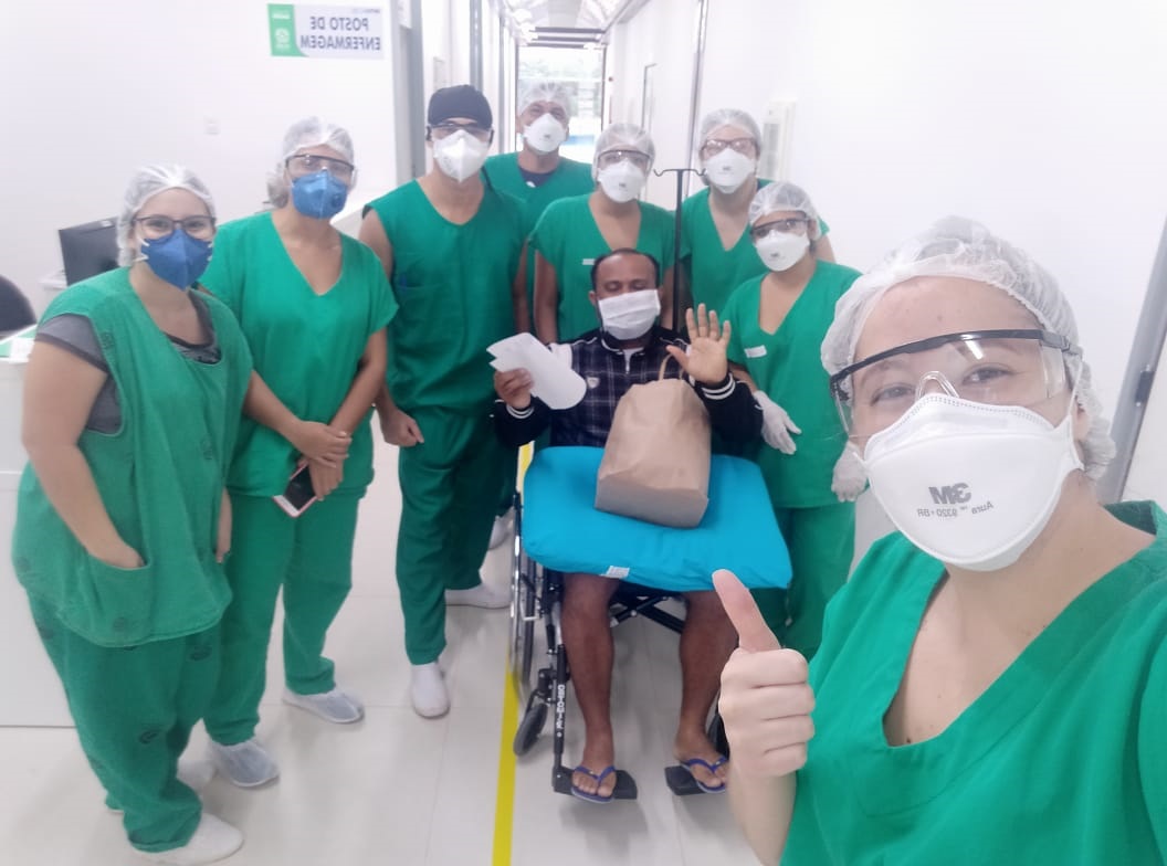 No dia 10 de maio, a transferiram para a UTI do Into-AC com o teste positivo para Covid-19. Lá, o seu quadro foi só melhorando, até que no dia 13 de maio foi removida para a enfermaria do Into e de lá se recuperou até sábado, quando pôde ir para casa totalmente curada.