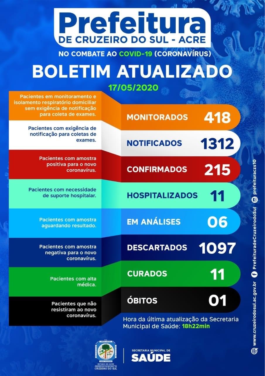 As informações do boletim divulgado pela secretaria municipal de saúde desta domingo (17), registra 2 novos casos e chega a marca de 215 pessoas infectadas pelo vírus.