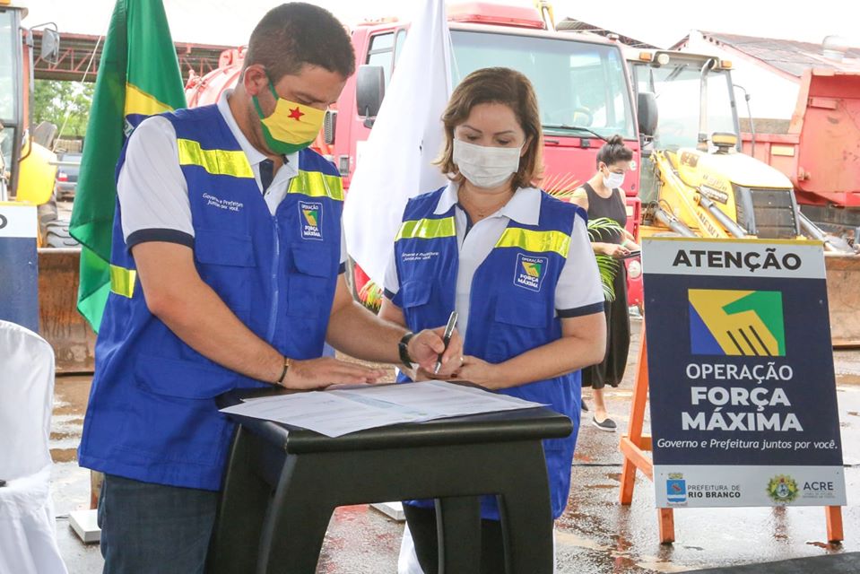 Com o intuito de estimular o crescimento econômico, neste período de pandemia, o governador do Estado, Gladson Cameli, e a prefeita de Rio Branco, Socorro Neri, assinaram nesta quinta-feira, 14, a ordem de serviço para o início da Operação Força Máxima. O trabalho prevê uma série de obras públicas.
