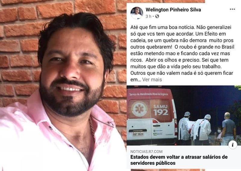 O dono de uma gráfica em Rio Branco, Wellington Pinheiro Silva, usou suas redes sociais para comemorar um possível atraso no pagamento de salários de servidores públicos por causa da pandemia de coronavírus. Silva compartilhou uma notícia de atraso de salários de um veículo de notícia.