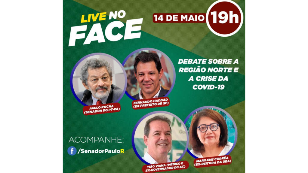 Participam também o ex-prefeito de São Paulo, Fernando Haddad, o senador do PT-Pará, Paulo Rocha, e a ex-reitora da Universidade do Estado do Amazonas, Marilene Corrêa. A transmissão será a partir das 19h, no Facebook do senador Paulo (facebook.com/PauloR).