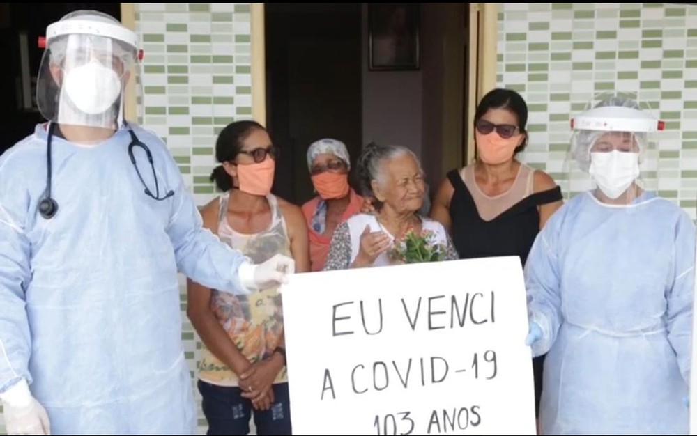 Após ter sido infectada pela Covid-19, dona Josefa Maria de Jesus, de 103 anos, moradora do Povoado Caraíbas de Baixo, município de Simão Dias (SE), finalmente recebeu alto do isolamento.