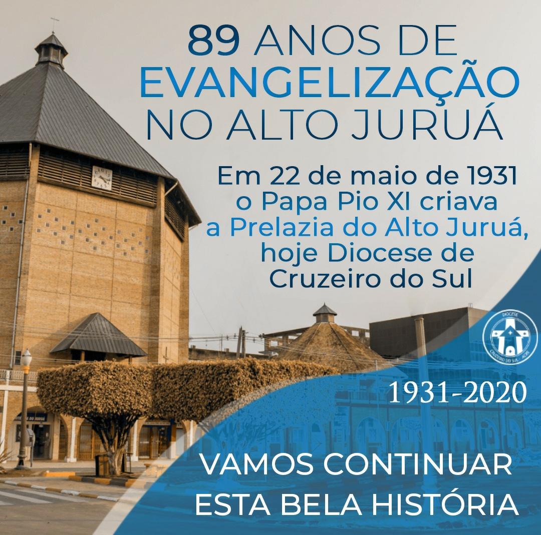 A Igreja Católica completa nesta sexta-feira, 22, seus 89 anos de evangelização no Alto Juruá. A Diocese de Cruzeiro do Sul foi criada neste mesmo dia em 1931 pelo Papa Pio XI.