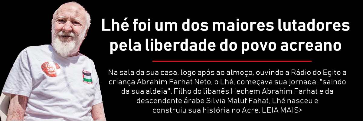 Na sala da sua casa, logo após ao almoço, ouvindo a Rádio do Egito a criança Abrahim Farhat Neto, o Lhé, começava sua jornada, “saindo da sua aldeia”. Filho do libanês Hechem Abrahim Farhat e da descendente árabe Silvia Maluf Fahat, Lhé nasceu e construiu sua história no Acre. Nesse pedaço de chão amazônico, nunca deixou suas origens árabes e esteve do lado de todas as lutas sociais possíveis, do seringueiro amazônida ao povo palestino.