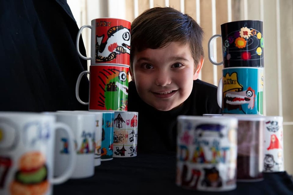 O pequeno Daniel, de 7 anos, descobriu cedo como associar talento com trabalho. Morador da cidade de Esteio, na Região Metropolitana de Porto Alegre, o menino diagnosticado com autismo ajuda na renda da família com a venda de canecas estampadas por desenhos de autoria própria.