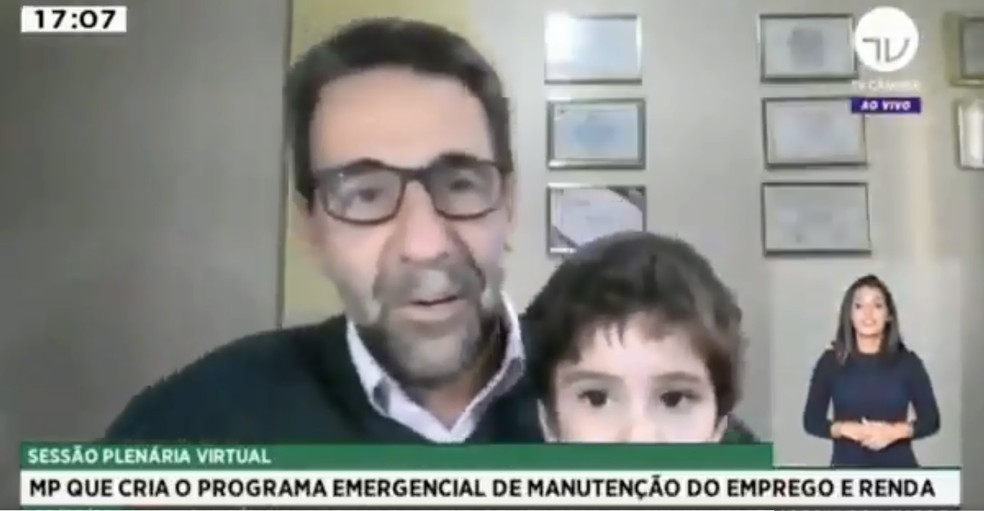 O neto do deputado federal Enio Verri, líder do Partido dos Trabalhadores (PT) na Câmara, apareceu durante a fala do avô na sessão virtual desta quinta-feira (28) e até conversou com o presidente da Casa, Rodrigo Maia (DEM). O vídeo repercutiu em redes sociais. Assista abaixo.