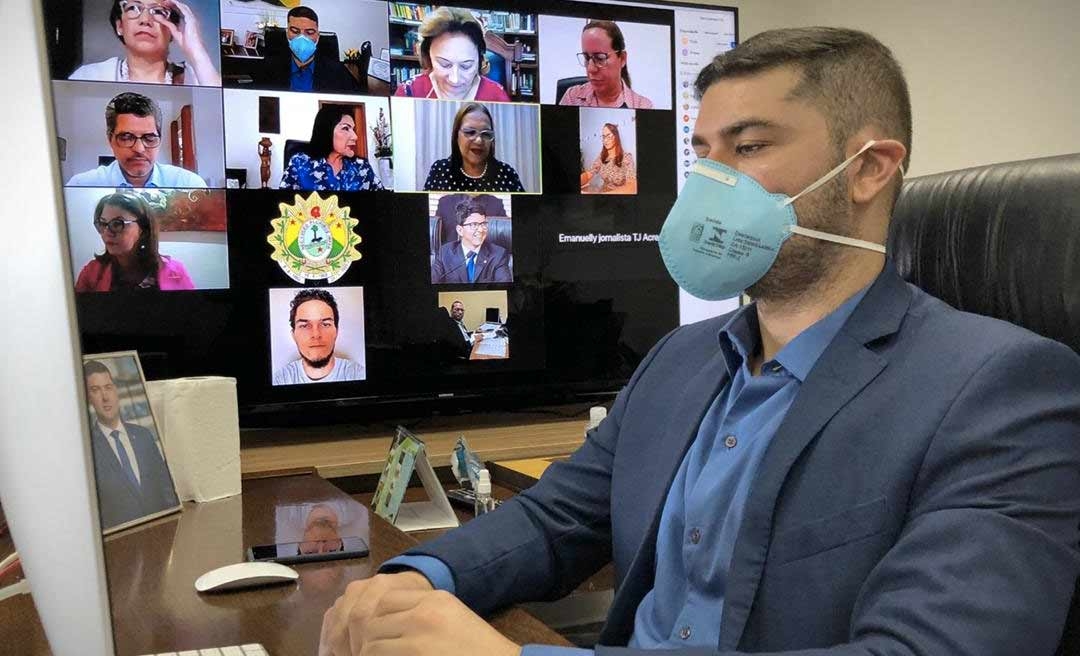 O presidente da Assembleia Legislativa do Acre (Aleac), deputado Nicolau Júnior (PP), fez a abertura na manhã desta terça-feira (12), da Videoconferência sobre o Enfrentamento à violência doméstica e familiar em tempos de isolamento social. Durante a reunião remota que teve início às 09h, e foi conduzida pela presidente da Comissão de Direitos Humanos (CDH), deputada Doutora Juliana (PSB), foram apresentados dois projetos de lei de autoria da Ordem dos Advogados do Brasil Acre (OAB/AC).
