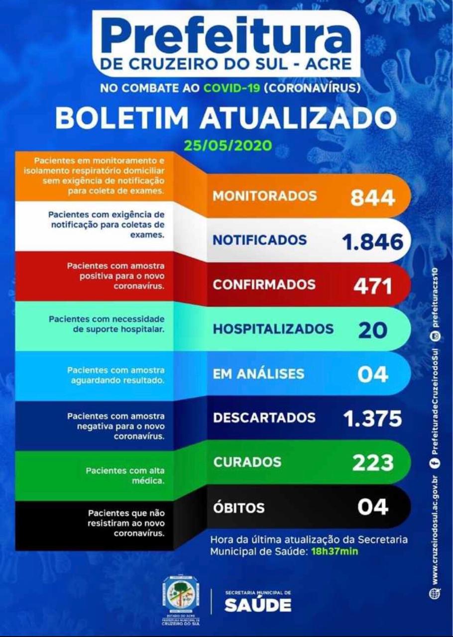O boletim epidemiológico divulgado na noite desta segunda-feira, 25, pela Secretaria Municipal de Saúde de Cruzeiro do Sul, trouxe consigo uma excelente notícia. Os casos de curas de Covid-19 saltaram de 58 para 223, um aumento de 165 novas pessoas que receberam alta médica, após serem diagnosticadas com o vírus.
