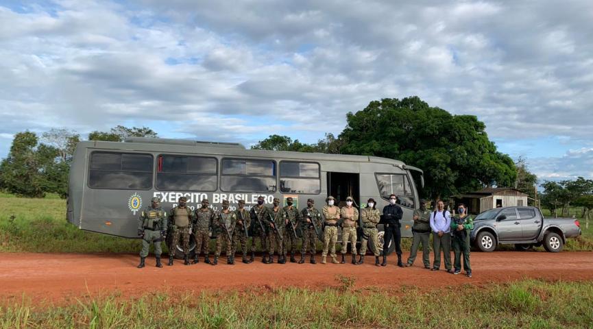 A ação visou a apreensão de instrumentos do crime de desmatamento, posse irregular de armas e invasão de terras públicas na região. Por ocasião da ação, oito pessoas foram presas em flagrante, bem como apreendidas duas espingardas, cinco motosserras e insumos para o crime de desmatamento, tal como combustíveis, óleos e correntes que serviam de acessórios às motosserras.