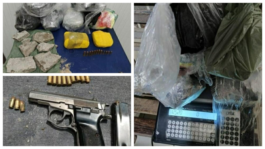 O droga, a arma e as munições estavam distribuídas em duas mochilas, que correram ao avistaram a chegada dos militares.