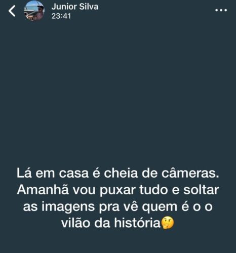 O acusado postou em suas redes socais que possui imagens das câmeras de segurança de sua casa. “Amanhã vou puxar tudo e soltar para ver quem é o vilão da história”, escreveu.