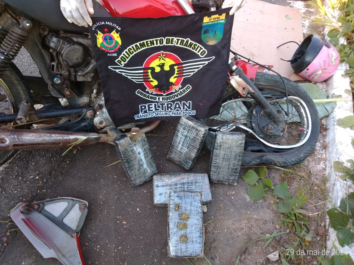 A Polícia Rodoviária apreendeu 5 Kg de drogas na tarde desta sexta-feira (29), durante um acidente de trânsito, entre duas motocicletas, que ocorreu cerca de 1 km da rotatória de Rodrigues Alves, na BR-364.