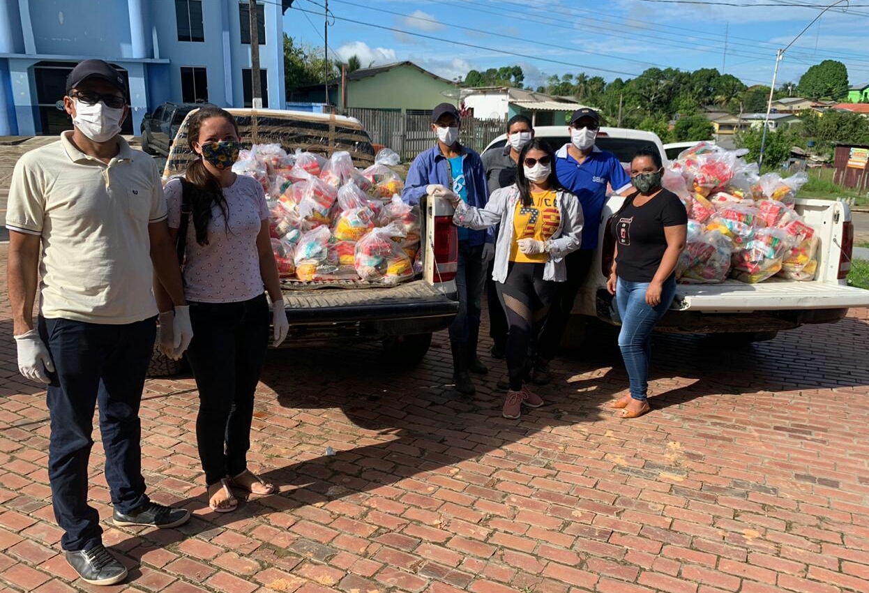 “Continuamos a nossa ação de entrega dos kits alimentares, independentemente das dificuldades, estamos percorrendo rios e ramais para levar a alimentação a todos os cidadãos”, destacou o prefeito Sebastião Correia.