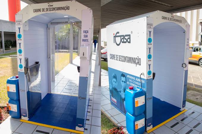 A prefeitura adquiriu duas cabines. A estratégia, que já foi usada em outras cidades do Brasil e também em outras cidade do mundo, faz com que quem passe pelo corredor de desinfecção, em sete segundos receba uma pulverização com um desinfetante sanitizante, eficaz contra bactérias, fungos, algas e alguns tipos de vírus, como o coronavírus.