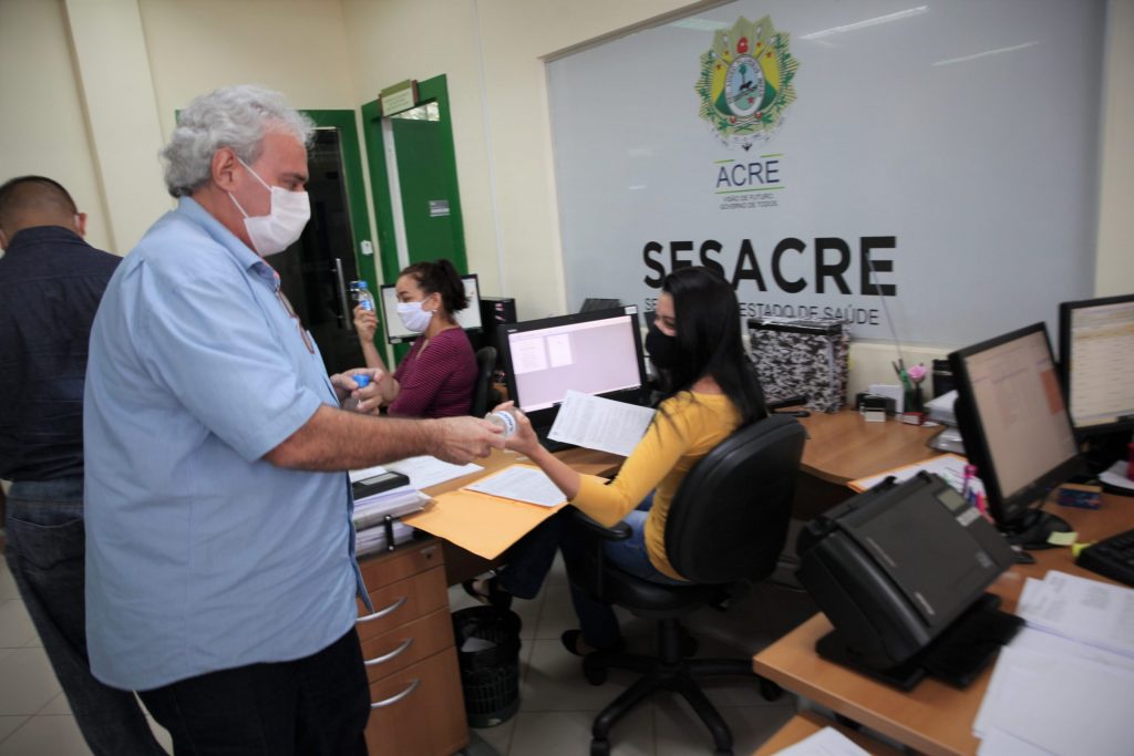 Considerando a situação de pandemia, bem como a necessidade dos serviços realizados pelos servidores da Secretaria de Estado de Saúde do Acre (Sesacre), o setor de humanização elaborou um projeto chamado “Cuidando de quem cuida”, que tem como proposta um trabalho de intervenção por meio da implantação da Brigada de Enfrentamento e Combate à Contaminação dos Trabalhadores em Saúde.