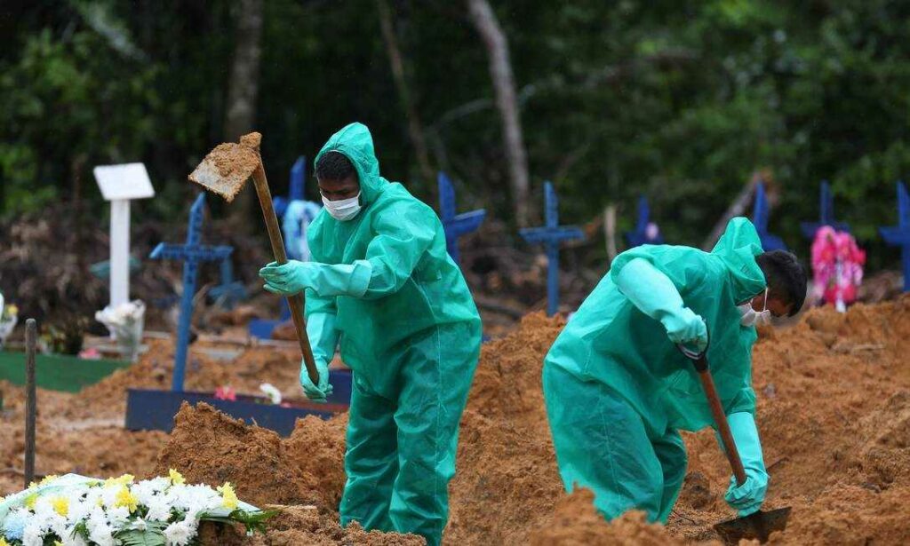 Setenta e quatro dias depois da confirmação do primeiro caso de coronavírus no Brasil, o país chegou ao domingo com mais de 10 mil mortos pela doença. Em média, 185 pessoas perderam a vida por dia desde que o primeiro óbito foi registrado no país, em 17 de março. Simulações feitas por um grupo de pesquisadores da Universidade de São Paulo (USP) voltado para identificar quando o país atingirá o pico de infecções apontam que o número de mortes poderá dobrar nos próximos 20 dias e o de infectados alcançar cerca de 400 mil até o dia 5 de junho, caso não sejam tomadas medidas de contenção da transmissão do vírus.
