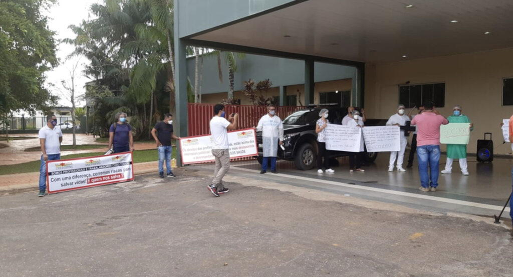Trabalhadores da Saúde fizeram um protesto em frente da Unidade de Pronto Atendimento (UPA) do Segundo Distrito de Rio Branco, que é referência no atendimento de Covid-19, para cobrar mais profissionais para a unidade. O ato ocorreu no início da tarde desta segunda-feira (11).