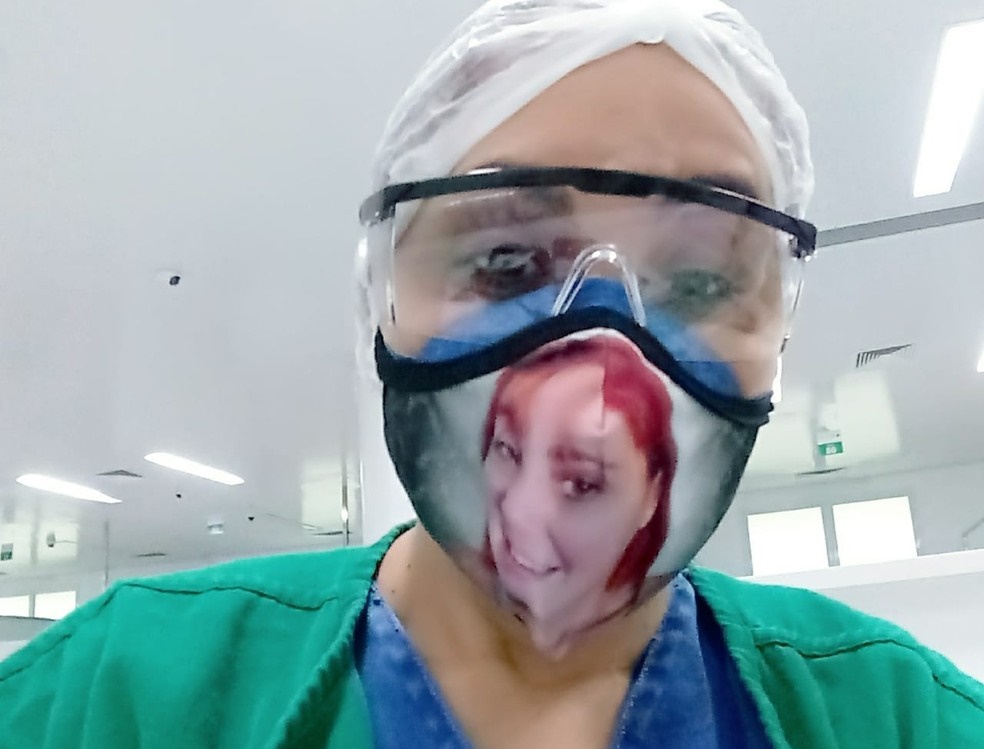 Com a resposta positiva, ela não pensou duas vezes, buscou aprovação do hospital e, após a aprovação, ela mandou confeccionar uma dúzia de máscaras para poder ficar mais próxima dos pacientes, só que de um jeito diferente. E há uma semana está usando o material.